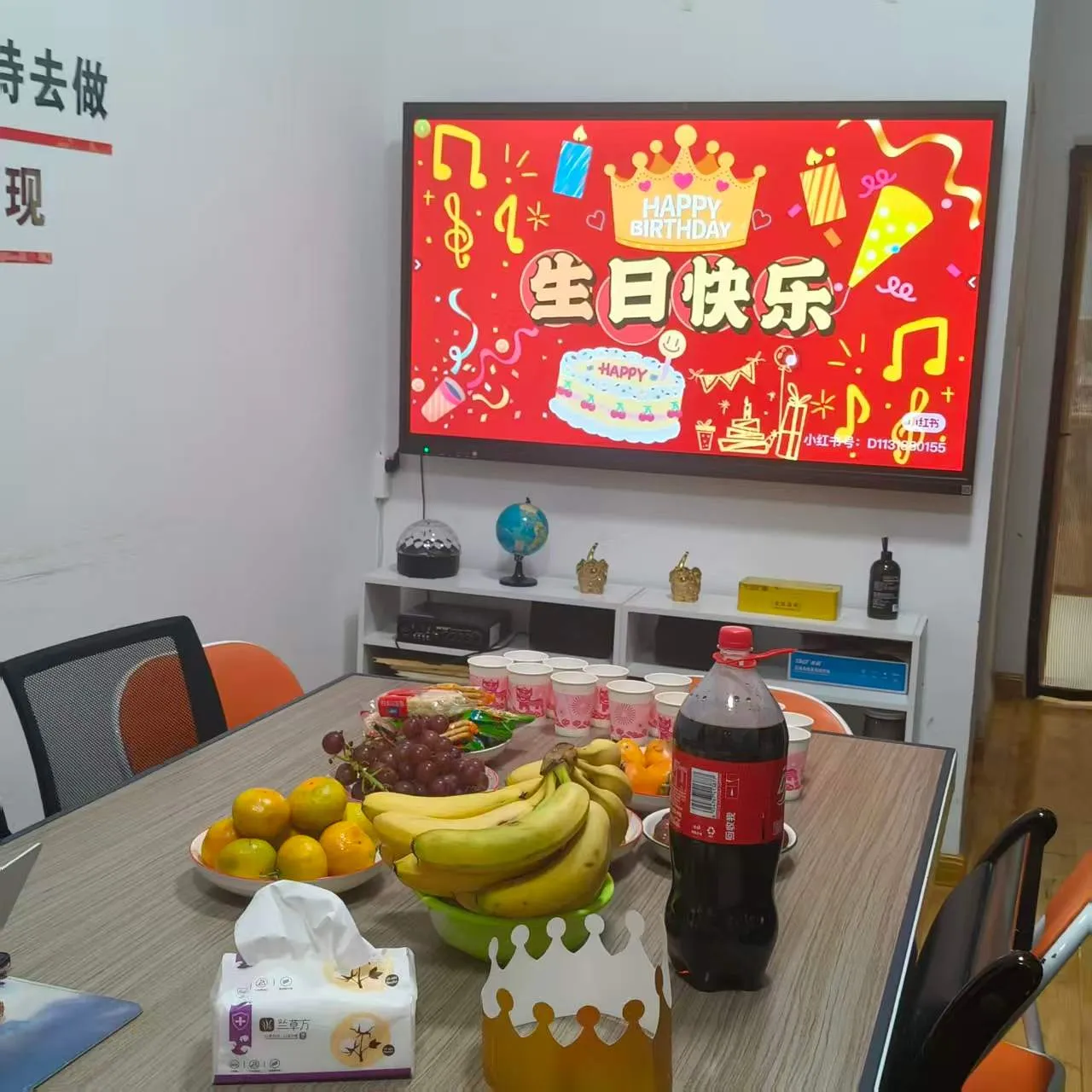 D'ullmhaigh an Bainisteoir Ginearálta Gao císte lá breithe milis agus torthaí úra do gach duine roimh ré. Ní raibh aon torann d'aon ghnó ann, roinn gach duine an císte go mall, agus scaipeadh an blas milis go ciúin, cosúil le smaointe na cuideachta do gach duine, gan mórán a rá, ach an-chroí.